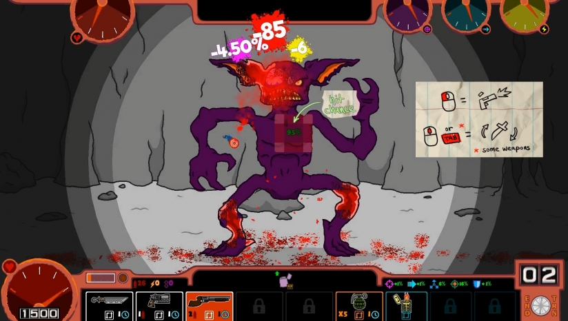 独特的射击场战斗让你摧毁身体瓷砖,以损害怪物的生命和减少他们的战斗统计,去找眼睛来减少他们的瞄准,拿出腿来让他们更容易被击中,或者扔掉爪子和牙齿来减少他们的力量——一切都取决于你!一点一点地消灭敌人!