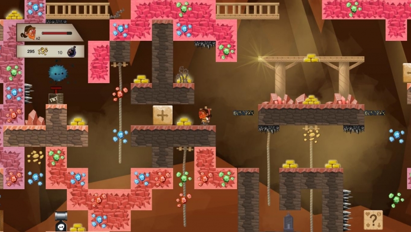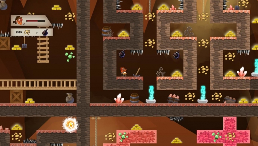 1人《误会者(Mistaker)》是一款2D平台跳跃类的采矿动作冒险游戏。在游戏中你需要收集金条,钻石和道具。穿越广阔的地雷区。抵抗怪物和强大的老板。破坏环境并改变环境的外观。面对未知的事物,找到走出广阔地雷的出路。