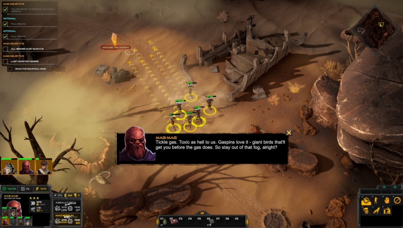 在灰色地带,你指挥英雄们和盟友们去抵抗敌人,强制或者可选择性的去完成游戏目标。你组建消防队,使用机器,车辆或武器去收集或者分发物品。你的目标是选择正确的作战策略,最小化的减少损失。游戏允许你把时间冻结在战术模式,以便给你无限的时间去思考你的战略,然后向不同的单位发出不同的命令。