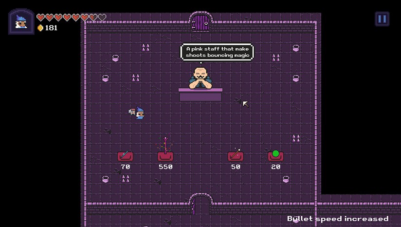1人《Wizodd》是由Gagonfe制作发行的一款上帝视角像素射击游戏。游戏采用经典的地牢冒险玩法,并带有Roguelike元素。游戏受到以撒系列的启发,但是并没有以撒系列那么多血腥和魔法场面,更加注重射击和弹幕玩法。