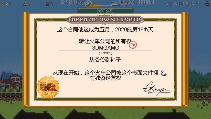 简中《小小铁路(Tiny Rails)》是由Tiny Titan Studios制作发行的一款像素风格模拟经营游戏。游戏中你经营一列独立的火车,伴随着列车的运行,最直观的感受就是你能够欣赏沿途美丽的景色,壮阔的沙漠和祥和的城镇,诡异的森林和无边的大海,,像素游戏画面表现力绝不比3D游戏差。