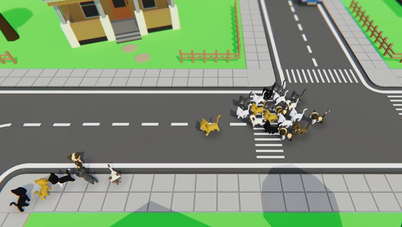 用鼠标、键盘或手柄来控制你的猫。跑到无人认领的小猫身边,让它们跟着你;或者跑到猫身边,让它跟着那些粉丝比你少的人,去偷它们的粉丝。在回合结束时拥有最多追随者的猫获胜。获胜回合允许你获得宝石来解锁新的皮肤,颜色和衣服来定制你的猫。