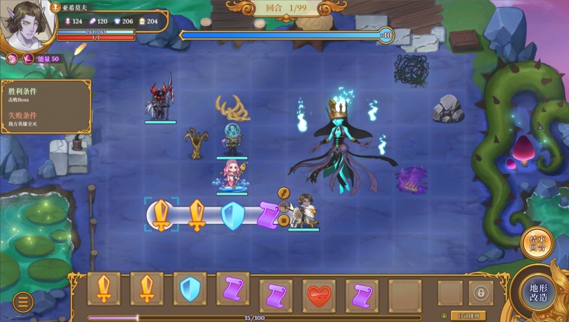 游戏以特色的“指令卡”取代传统战棋角色的移动力及技能的释放,还有BUFF状态的获取。在战斗中,你既可以体验一骑当千的快感,也能享受步步为营,运筹帷幄带来的策略满足。