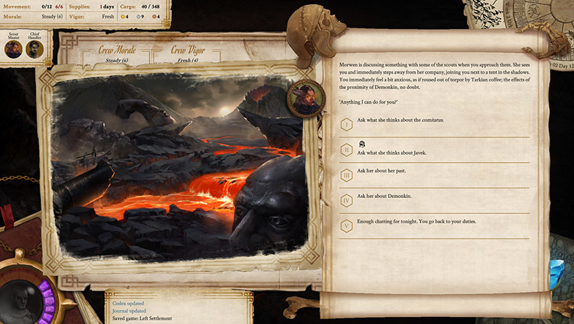 玩家可以招募各种各样的同伴进入大篷车,以担任多种角色,例如侦察长,警卫队长,军需官或导航员。他们每个人都有自己的战斗技能,背景故事和个人任务线,完成后可以以无法预料的方式升级它们。他们可以不断提高经验水平,以成为更有能力的机组人员以及在战斗中。