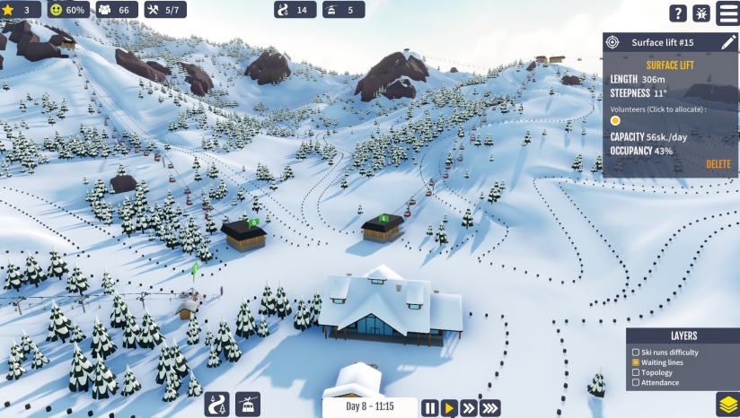 从地面开始建一座易滑的山。把雪莲世界塑造成一个理想的世界。在居住您度假村的社区的支持下管理度假村。确保每个人都能在这个乌托邦式的、冬天的世界里得到一个位置和幸福。