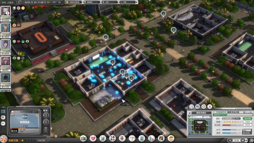 《电视台模拟国(Entertainment Simulator)》是一款国产城市建造类模拟经营游戏。在游戏中你将扮演一名电视台的台长,你需要想尽各种办法提高这里的业绩,和艺人们签订培养合同,将所有的资源都囊括进来,打造一个最好的电视节目!