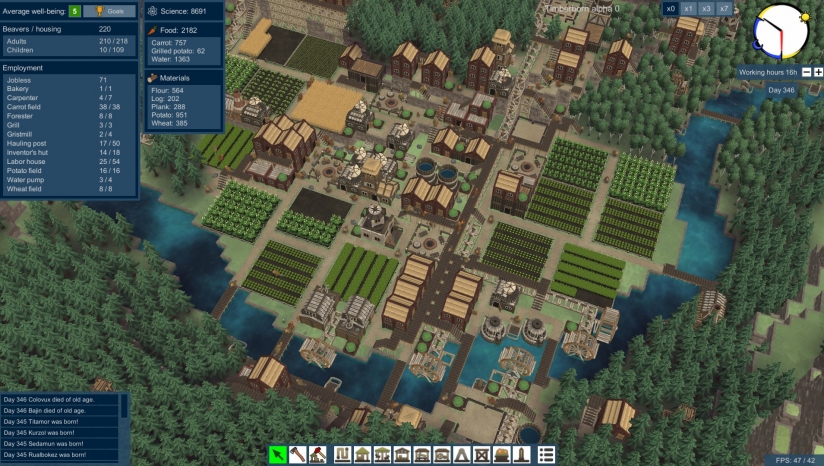 用高效的生产链和勤劳的夜间活动建设繁荣的城市。追踪一整天模拟居民的生活。