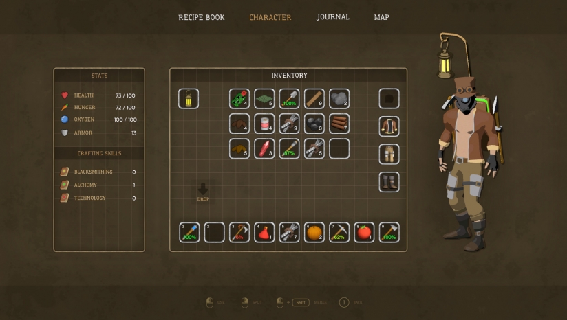 制作、改进你的装备。一件好的武器和盔甲将会帮助你生存,但当你的对手比你强大得多时——最好逃跑!