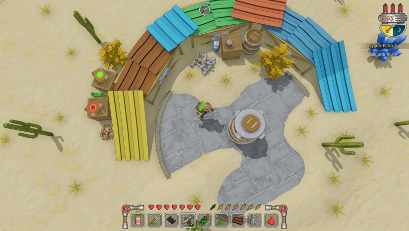 收集必要的资源来建造你的基地,修复损坏物品并完成委托。