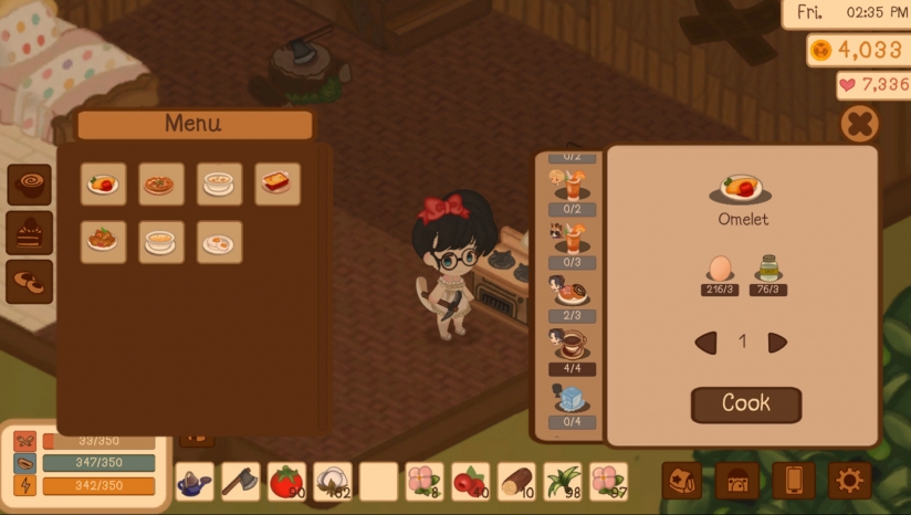 如果你不。你将无法为你的顾客提供服务,检查你的食谱,找出需要的食材,不要忘记照料你的农场