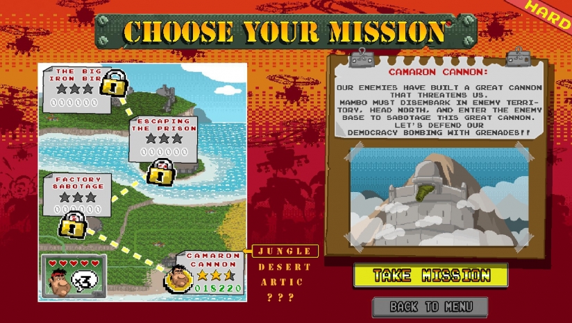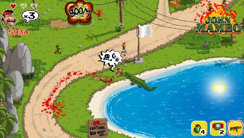 《John Mambo》是一款复古街机类的动作冒险游戏。在游戏中你需要通过自己超强的作战技巧来完成每次的冒险,各种的枪支都能够灵活的去进行使用来战斗,精彩无比的远程射击,学会寻找掩体进行躲避,同时完成自己的任务。