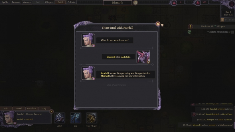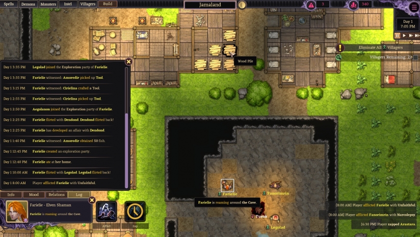 受《Rimworld》和《矮人要塞》等故事生成器游戏的启发,编织痛苦和悲伤的故事是Ruinarch游戏玩法的核心。当然,你可以召唤一堆骷髅来攻击一个村庄,但是一个真正的邪恶领主会先玩弄他的猎物。给当地的英雄造成Lycanthropy和观看他曾经忠诚的朋友转向他时,满月升起。把一个当地的白痴变成一个连环杀手,有一个你自己设计的杀人模式。如果你觉得自己很懒,没有时间去创造,那就开始僵尸末日吧!