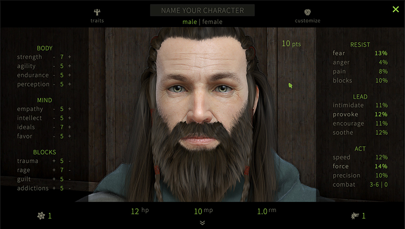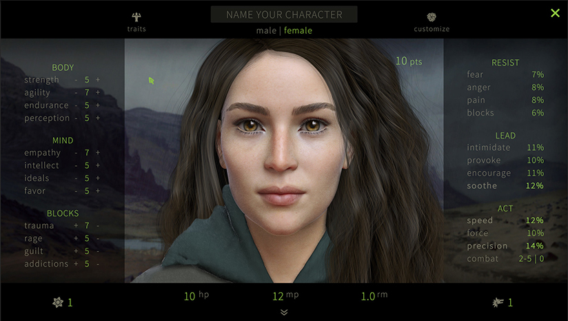 创造属于你的英雄的身心。你会是勇敢的人,图谋复仇的人,还是天资聪慧但却负伤的人?自定义你的外观和特征,这将决定你的游戏风格。