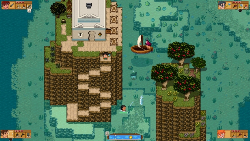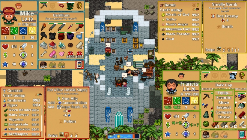 简中《天命与厄运世界(Doom & Destiny Worlds)》是一款开放世界生存制作类的回合制角色扮演游戏。在游戏中你将控制四个不同的主角来在这里进行冒险,建立起自己的家园,通过制作、建筑与耕种让自己变强并存活下去,击败这个世界的BOSS你才能够顺利的回家。