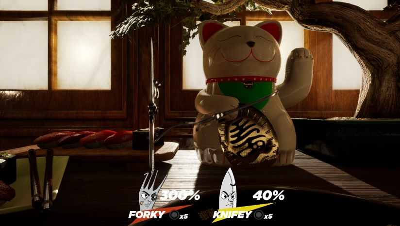 控制你的餐具,去每个关卡也就是每个餐厅挑战其他餐具,看看能不能获胜