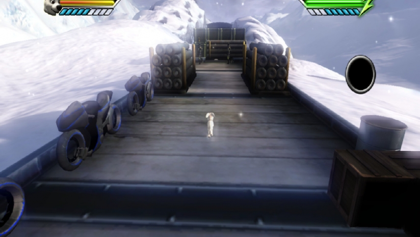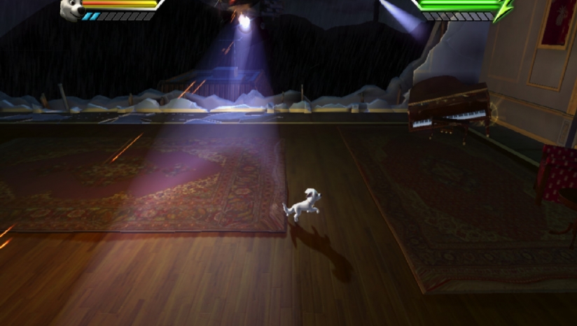 作为博尔特,玩家可以使用他的超能力,包括激光视觉和他的超级吠叫,它能发出一种声音爆炸,摧毁对手;而作为佩妮,玩家可以使用隐身、黑客技术和一根车轮杆,以她在电影中看到的摩托车为灵感,智胜敌人。