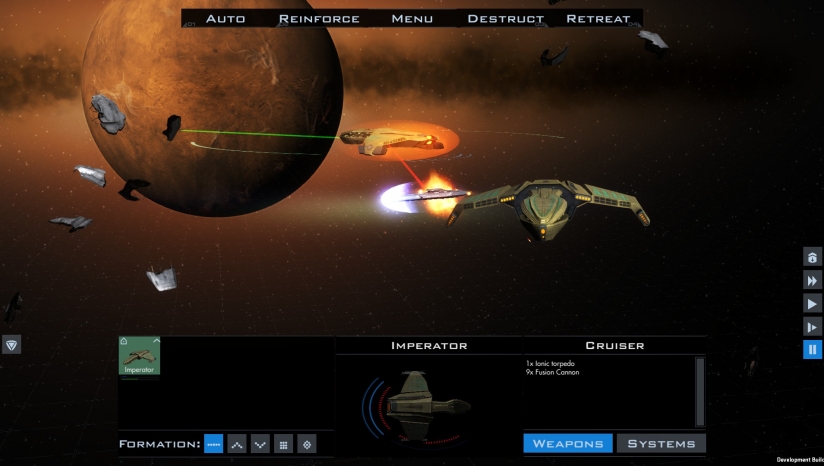 实时战斗会因使用好的战术而有所回报。使用较小的舰只侧翼并瞄准较弱的后防弹。目标子系统并禁用:武器,防护罩,引擎,计算机和其他系统。使用机上海军陆战队突袭或俘虏敌舰。