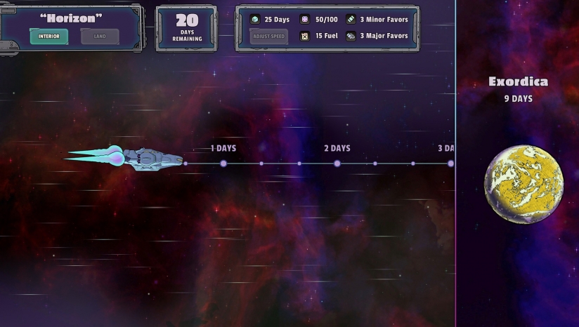 管理您的资源以使您的船员感到高兴。世界之间的晋升可能会付出巨大的代价,工作中的失败也会造成伤害。一个快乐的船员是一个有生产力的船员……大多数时候。