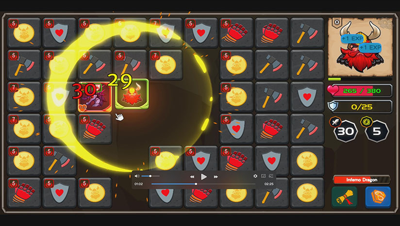 当你控制富有个性的角色在棋盘上驰骋时,各种身怀绝技的怪物尾随而至。在你完成一次连线移动后,怪物就会向你发起冲锋,并使用各具特色的攻击方法和你“打招呼”。