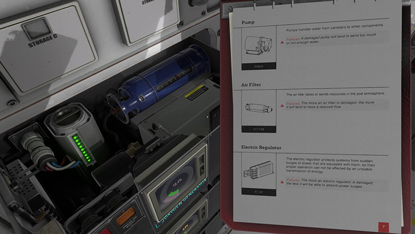 逃生舱内的所有系统均由许多不同的组件组成,从保险丝到空气过滤器。它们都是相互联系的,并具有自己的关键功能。