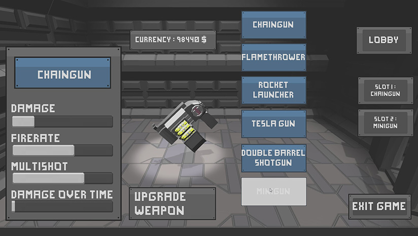 您的冒险从只能下降的电梯开始。没有任何工作原因的线索,您别无选择,只能向前迈进。聘用您并不重要,重要的是要活下来。幸运的是,您带着旧的,值得信赖的武器。但是您很快意识到这还不够。您下降的次数越多,敌人就越强大。但是永远不要烦恼!您的敌人丢了钱袋,您可以将钱袋用作货币以升级您的武器,甚至购买新武器!