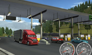 注:目的地在大地图上标有一个红点,具体货场在城市内地图上标有一个红点。很好找的,真正难的是如何找准上下高速的匝道,以及跑错匝道后如何顺利倒车(鄙视依靠车外是叫倒车和确认砸到的人,个人观点:这个游戏还是用车内视角更有意思)