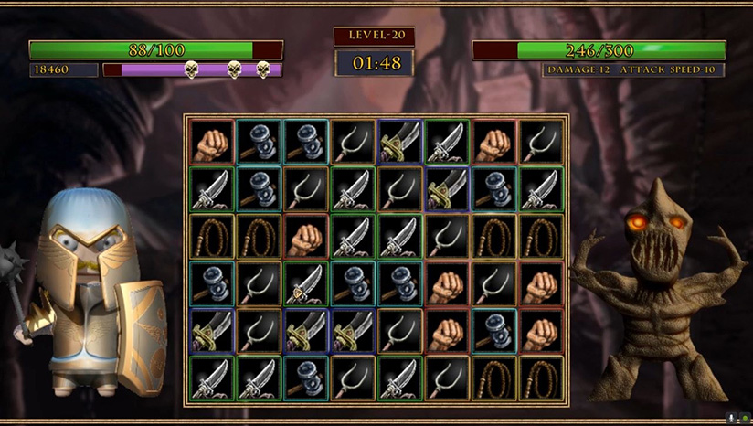 磨好你的剑,去冒险吧! 为了在历史上延续你的名字,你需要打败龙,在路上你会遇到许多其他敌人。敌人有不同的特点,所以你需要迅速行动,收集3个或更多相同瓷砖的组合来攻击敌人。