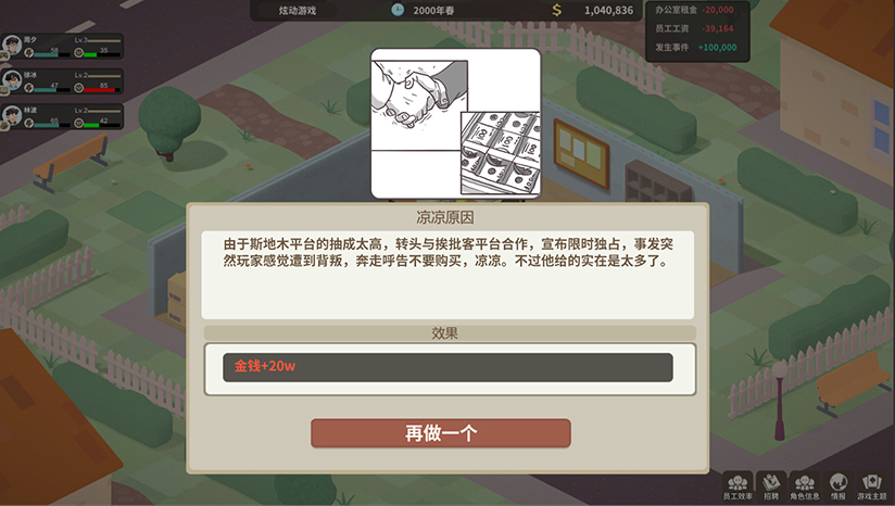 根据你想要发展的游戏制作方向,招募各类“奇”才为你所用:小鸟秀夫、中结者、真·程序员……甚至是一只办公室萌宠猫咪!