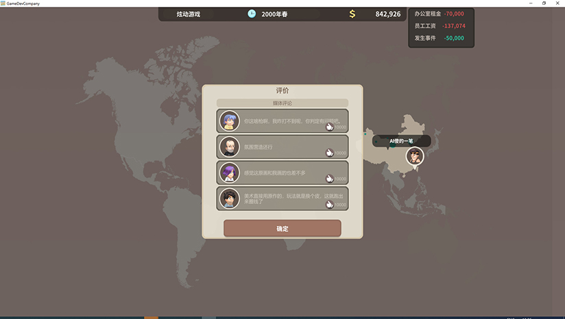《老板,游戏凉了!(Sim Game Company)》是Fate Game Studio制作并发行的一款关于经营游戏制作公司的模拟游戏,在游戏中玩家将扮演一个老板的角色,指挥你的团队进行游戏的开发进程,合理安排人员的各种任务,你的每个决定都有可能会影响你的团队的存亡。