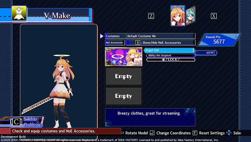在快节奏的hack'n'斜线战斗中,在四个女神和可玩的VTubers之间无缝切换视角。以迅捷的连击震撼敌人,并在地图上滑动以躲避即将来临的攻击。