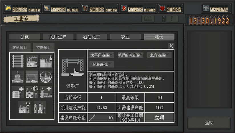 按照国家的需求制定生产计划。生产民众的生活消费品?建设基建?生产T34?一切由玩家安排。在这里,你甚至可以造多种奇观,完成苏联当年未竟的宏伟建筑。