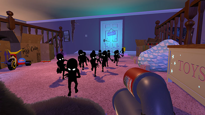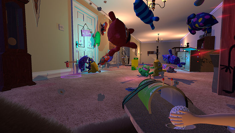 《熊熊魇杀队(STUFFED)》是一款可爱风格的防守生存FPS游戏,在游戏中你要深入到小女孩的梦境之中,可怜的小女孩经常做噩梦,梦中奇怪的玩具生物想要闯入小女孩的房间,而你是小女孩最喜欢的毛绒玩具,在这个时候拿起武器准备保护她,游戏支持两人分屏本地联机。