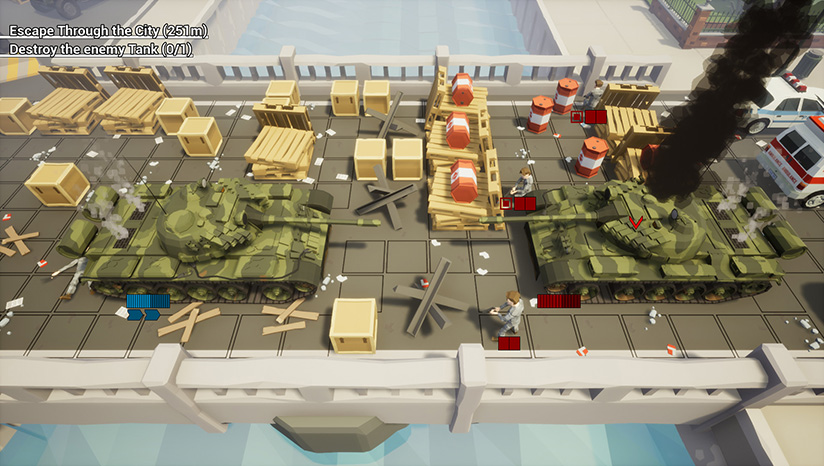3人《逃亡(Run For Cover)》是Michail Ostrowski制作并发行的一款回合制战棋类策略游戏,在游戏中玩家将带领一队士兵,前往镇压民间的暴乱组织,穿过堆满障碍物的街道,清除沿途的敌人,阻止可能因为场面失控而导致的恶劣后果。