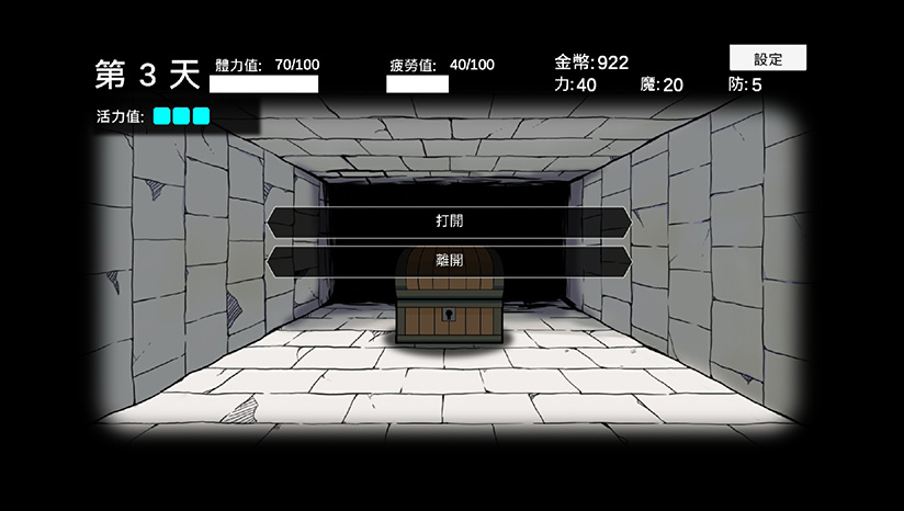 这是一款有关迷宫探索的文字游戏故事介绍:魔王将在90天内复活。正在调查迷宫的奇洛,与冒险者莉亚相遇,一同寻找阻止魔王复活的方法。