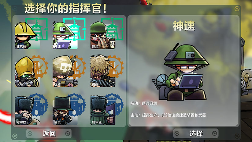 爆炸狙击手鹰眼、暗中监视着幽灵,9种不同技能不同风格的指挥官供你选择,打造专属自己的战斗风格!