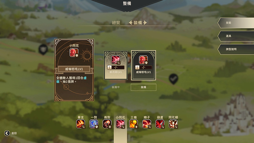 游戏玩法融合《杀戮尖塔》、《欺诈之地》这类牌组构成玩法的策略性与扑克牌的牌型组合。