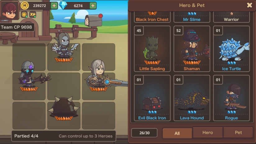 通过搭配各种职业英雄及宠物,打造不同类型的强大战队。
