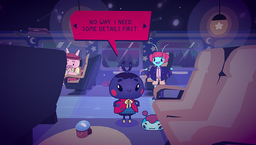 《Tracks of Thought》是Tidbits Play制作并发行的一款卡通风格的角色扮演游戏,在游戏中玩家将扮演一只虫子,乘坐一列未知的列车,你不知道列车通往哪里,自己的目的地又是何方,你需要在列车上与友好的虫子对话,选择合适的语句来回答,从对话中找到自己想要的答案。