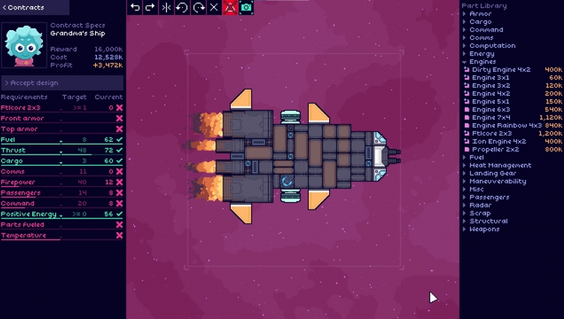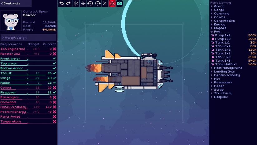 1人《阳光重工(Sunshine Heavy Industries)》是一款太空题材的模拟建造像素游戏,你要建造巨大的宇宙飞船,以满足太空航行的需求。你经营的是银河系最大的飞船制造厂,根据客户的需求制作出满意的飞船,调整预算和提高船舶性能,并使您的业务合作伙伴满意。