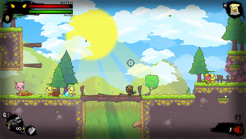 1人《蓬松的戈尔(Fluffy Gore)》是由Darkenauts Studio制作并发行的一款画面卡通但内容血腥的横版射击动作游戏,在游戏中玩家将扮演一个早已支离破碎的小泰迪熊,但是你内心想要存活的强烈意志让一个神秘的黑影发现了,它占据了你的身体,并给予了你强大的武器,这让你“重生”了。