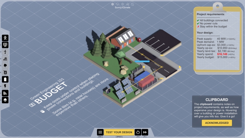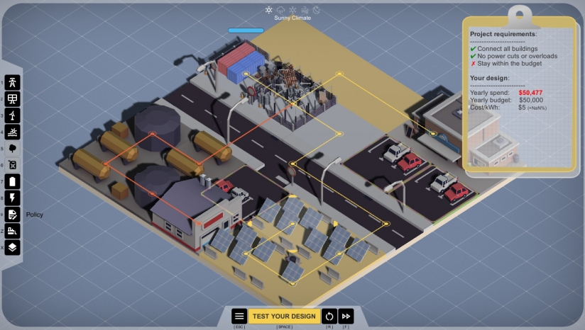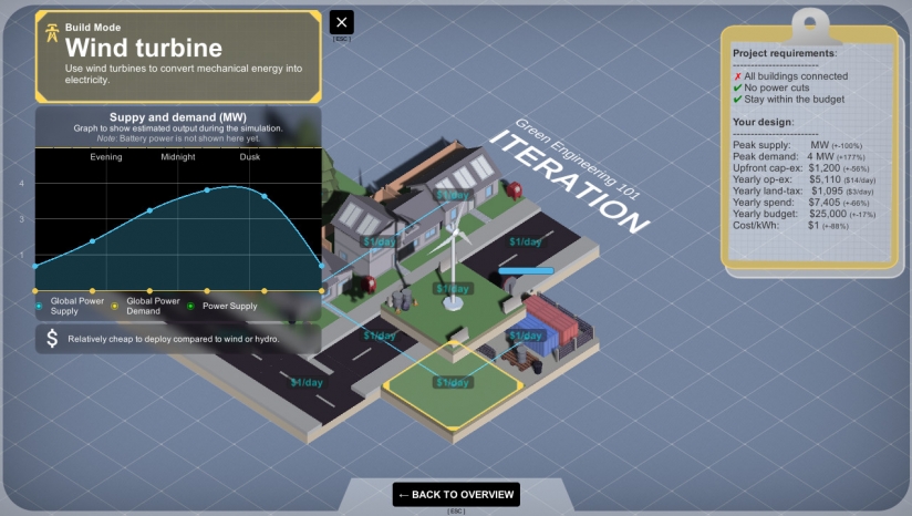 扮演工程师的角色,为绿色未来而努力。您的目标是为城镇建立自给自足的电网,并减少对化石燃料的依赖。评估当地的独特需求并设计解决方案,充分利用您周围的元素。