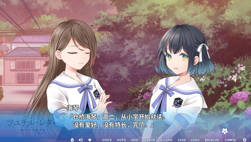 简中《梅时露霁书~雨潺海汐间~(Letters From a Rainy Day -Oceans and Lace-)》是一款百合向的文字冒险游戏,游戏剧情十分温暖治愈,在一所日本镰仓的贵族女子学园内,因为一封恐吓信,两个陌生的少女的命运交织在了一起,她们之间又会发生怎样的故事呢?