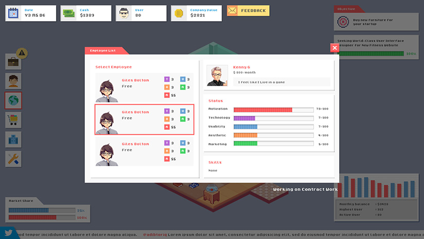 现在就辞职,并开始激动人心的创业吧!从科技泡沫下存活下来,和对手 CEO 们共同竞争,从一位居家程序员一路扩张,直到跻身于世界级公司之列!前提是在那之前,你不被人黑……或被绑架……