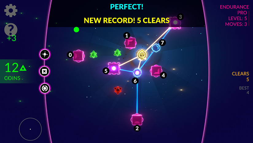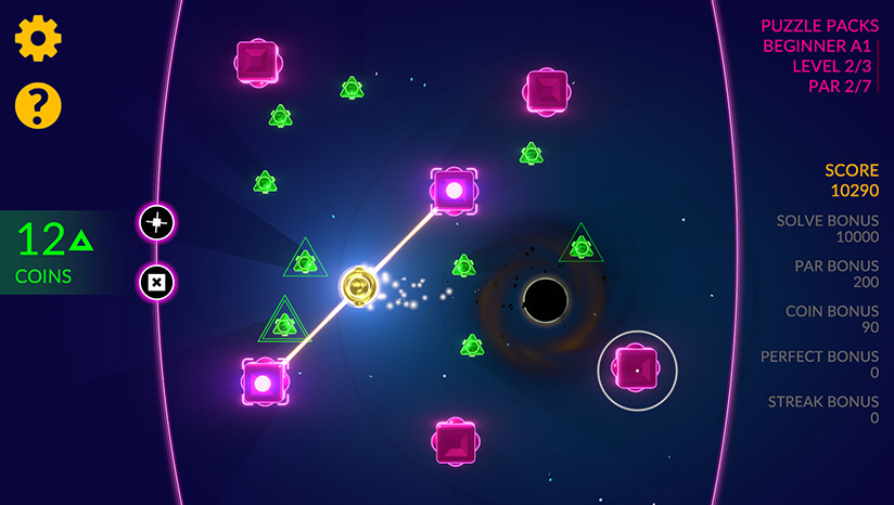 《Triversal》很容易上手;只需添加和移除弹性系绳,就可以拉动光球,使其与黑洞对齐。用鼠标、键盘或控制器来玩。这就像数数一样简单。