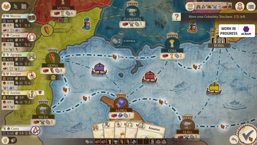 康考迪亚:数字版”是一款以回合为基础的战略游戏,有2到6名玩家为争夺财富和影响力相互对抗。在几幅古代世界地图中的一幅上建立你的贸易帝国。