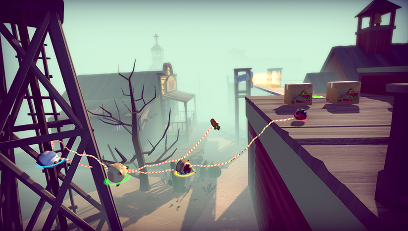 《快到碗里来》是一款风格十分欢乐的平台跳跃动作游戏,你将扮演两只被一条弹力绳索连接的小动物:利用弹力绳索、场景内的机关甚至是你的队友,发挥脑洞大开的操作,最终达到终点!