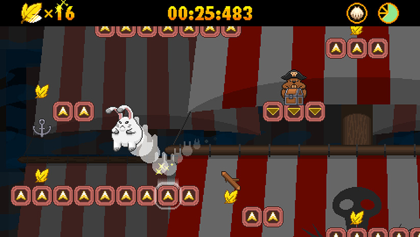 《Rotund Rebound》是由Dahku制作并发行的一款像素风格的复古平台跳跃游戏,在游戏中玩家将扮演一只英勇的兔子勇士,你的朋友们被黑暗的力量掳走了,现在只有你能救他们,跳下兔子洞,与各异的敌人对抗,与伙伴结成一队发挥各自的能力并闯过重重难关。