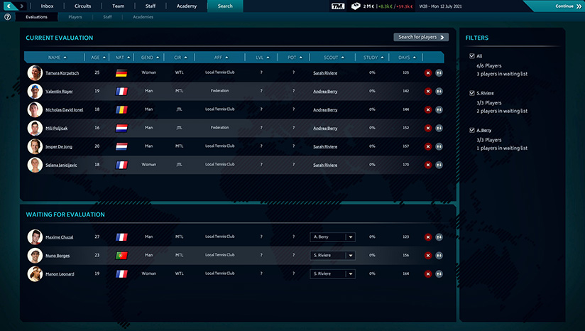 《网球经理2021(Tennis Manager 2021)》是由Rebound CG制作并发行的一款体育经营模拟游戏,在游戏中玩家将成为一名网球经理,你将带领你的网球队进军最高级别的荣誉,合理安排队员的每日训练和休息,改良装备,提拔新人并好好培养,成为最优秀的经理。