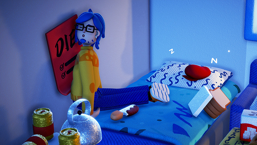 玩家可以操控累趴下的主角在任意表面上爬行,与房间里的家具摆设进行真实的物理互动,完成一系列看似简单实则艰巨的“睡前待办事项”,方能安然入睡。