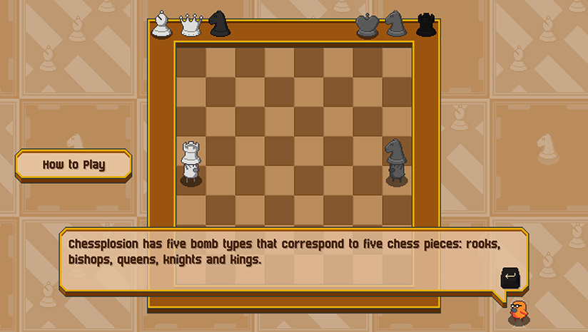 《Chessplosion》是一款街机动作解谜游戏。在游戏中,你可以放置棋子形状的炸弹来创造出连锁反应从而使你的对手陷入困境。在冒险模式中击败敌人和boss们,在解谜模式中用有限的炸弹来破坏目标,在生存模式中躲避爆炸,或是在对战模式中与你的朋友们一决高下。不需要国际象棋的相关知识也能进行游玩,更有可选的教程能够让你快速上手。